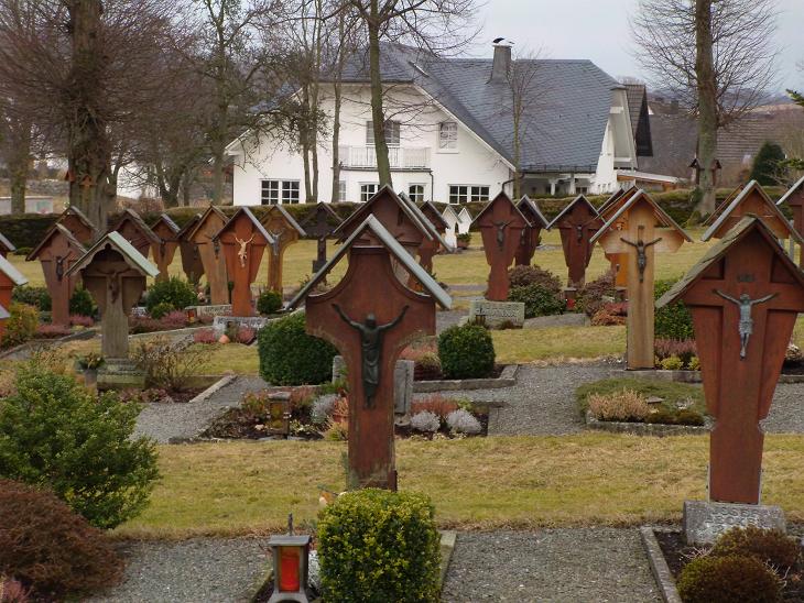 Lediglich die Gräber der verstorbenen Pfarrer haben eine entgegengesetzte Ausrichtung.