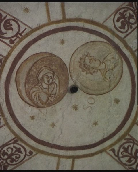erscheint. Sehr auffällig ist hier eine um 90° verdreht gemalte männliche Sonne. Durch diese Ausrichtung
