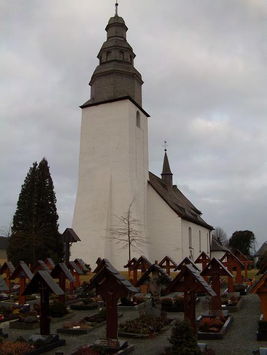 Die Urpfarrei St. Peter und Paul im Schmallenberger Sauerland diente Jahrhunderte lang ihrer bestimmenden Aufgabe. Als bei Renovierungsarbeiten 1955 - 1957 unter einigen Lagen Kalkfarbe ursprüngliche Malerein zu Tage kamen, begann für diese Kirche eine weitere Renaissance.