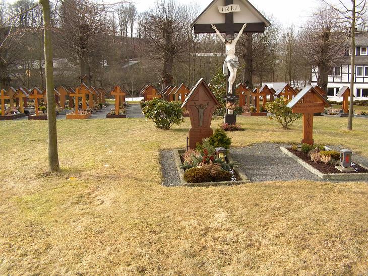 Lediglich die Gräber der verstorbenen Pfarrer haben eine entgegengesetzte Ausrichtung.