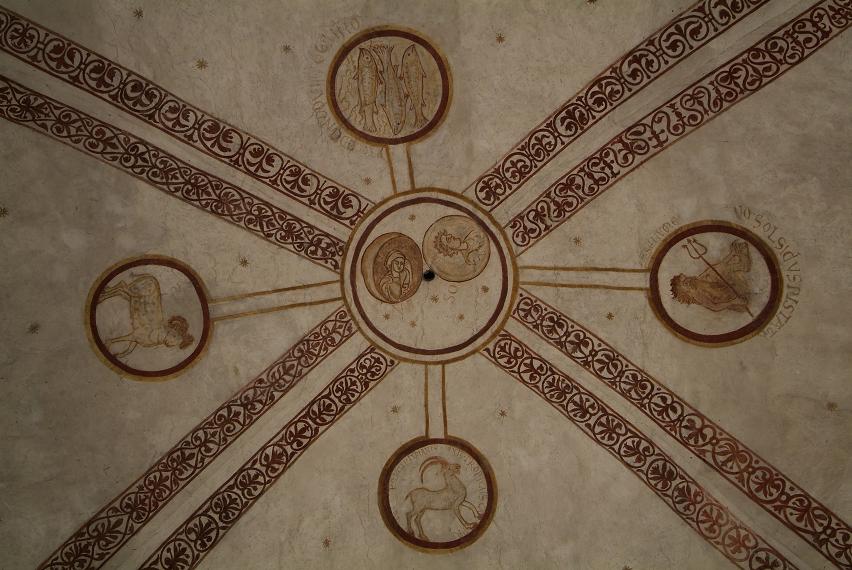 Im Bildlichen Gesamtkonzept ist auch die als Kreuz ausgeformte elementare Zuweisung der Tierkreiszeichen zu erkennen.